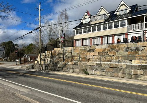 • The retaining wall was constructed from granite, a particularly challenging material. Our team employed specialized equipment and innovative techniques to drill three-foot-deep holes into the stone to secure the anchor rods, ensuring the stability and integrity of the structure.